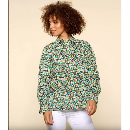 Camisa de corte oversize de manga larga y ancha con cuello y puños con detalles de bordado a mano.
