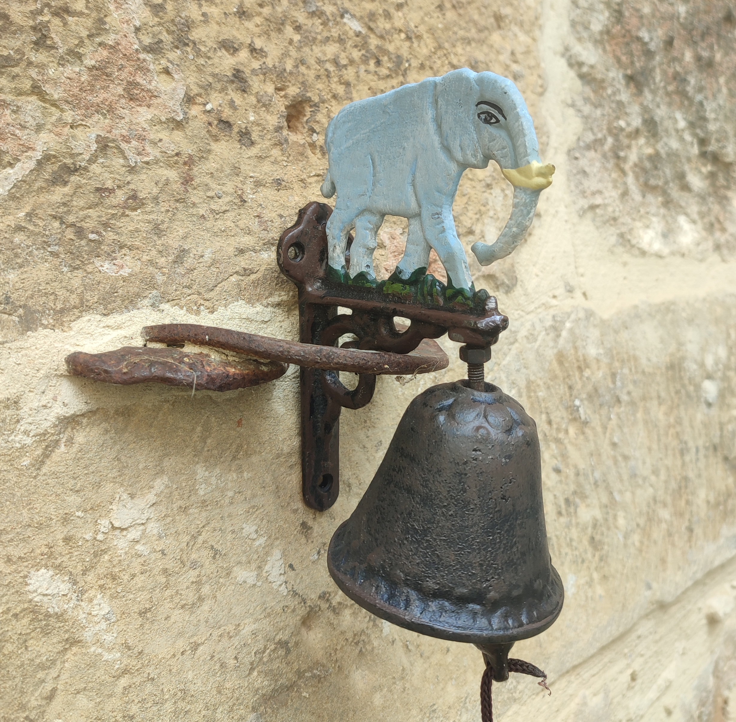 Preciosa campana de hierro fundido modelo elefante. Sonido muy agradable.