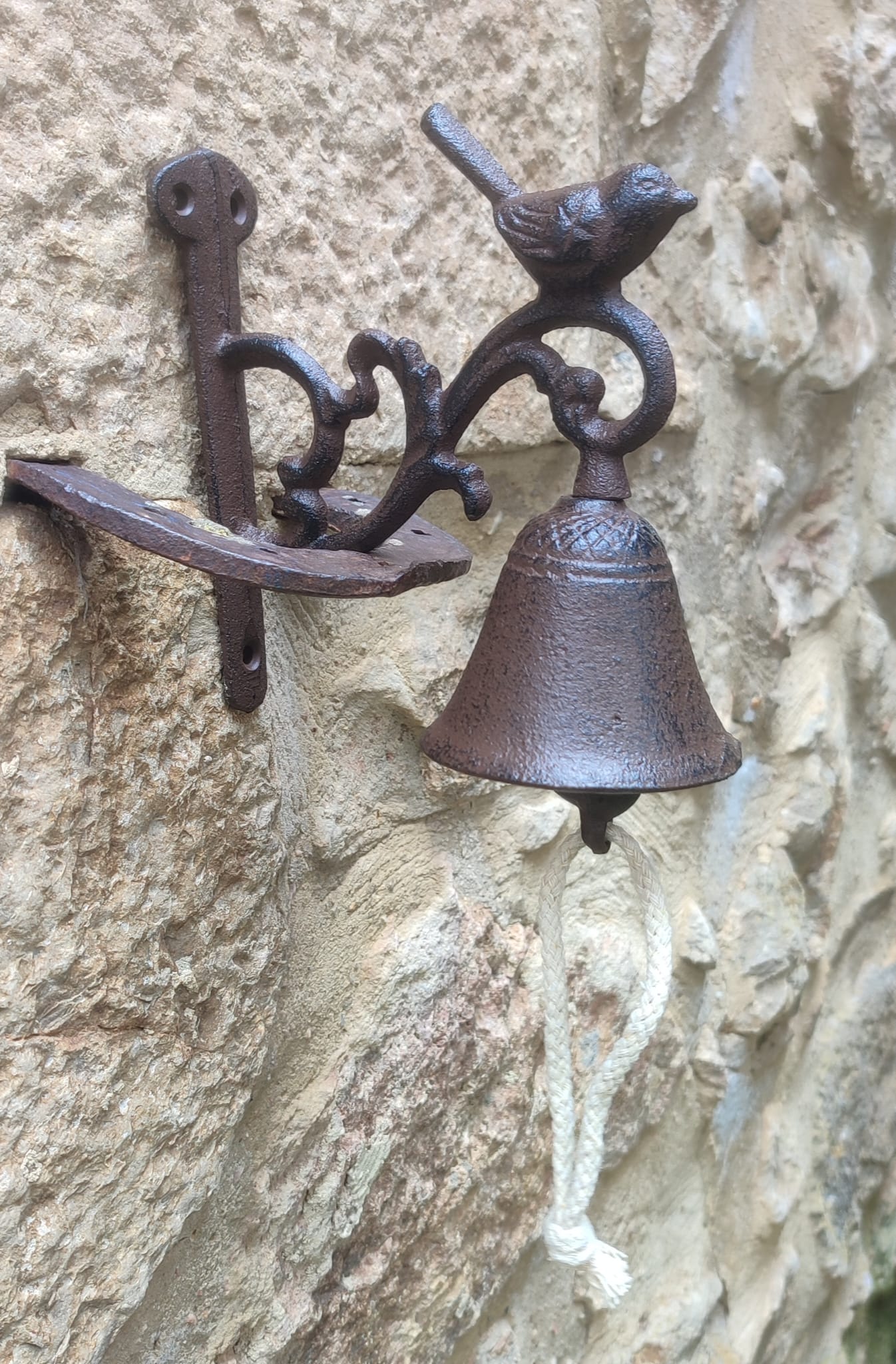 Preciosa campana de hierro fundido modelo pajaro. Sonido muy agradable.