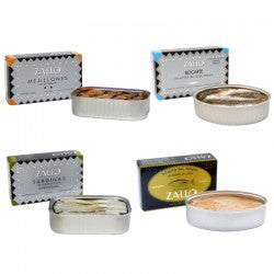 Un pack con una selección de conservas de Bermeo Zallo, lo mejor de nuestro mar. En este pack de conservas zallo encontraras 4 latas de conservas de pescado diferentes: - Bonito del Norte - Bocarte - Sardinas - Mejillones