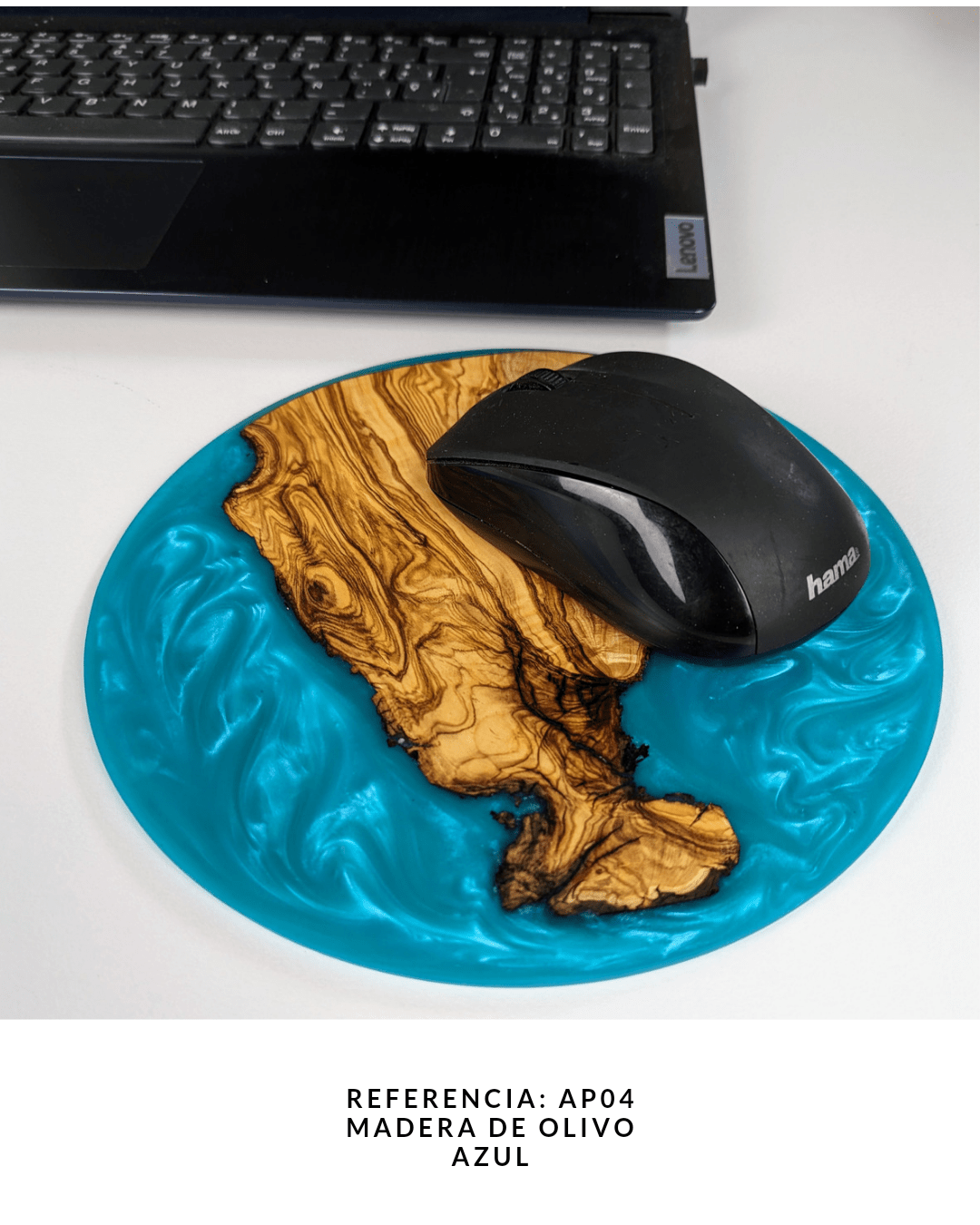 Realizada artesanalmente en madera de olivo y resina espoxi. Otros colores y medidaas, consultar