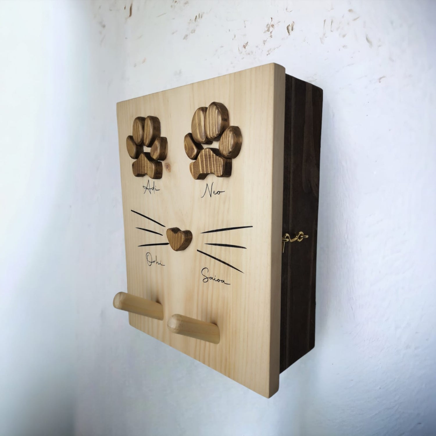 Armario de madera para la organizacion de los objetos de nuestras mascotas. Con soportes para colgar las correas.