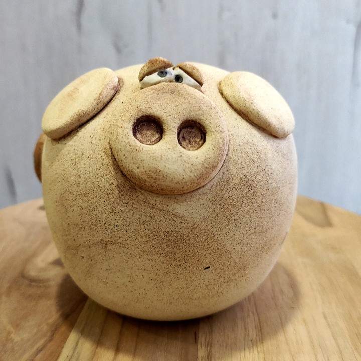 Hucha TXERRI de cerámica realizada en gres. Medidas aproximadas: 12x14 cm. Tapón de corcho para poder sacar el dinero. Las piezas se tornean y se modelan a mano, por lo que pueden tener alguna diferencia con las que se muestran en las fotografías.