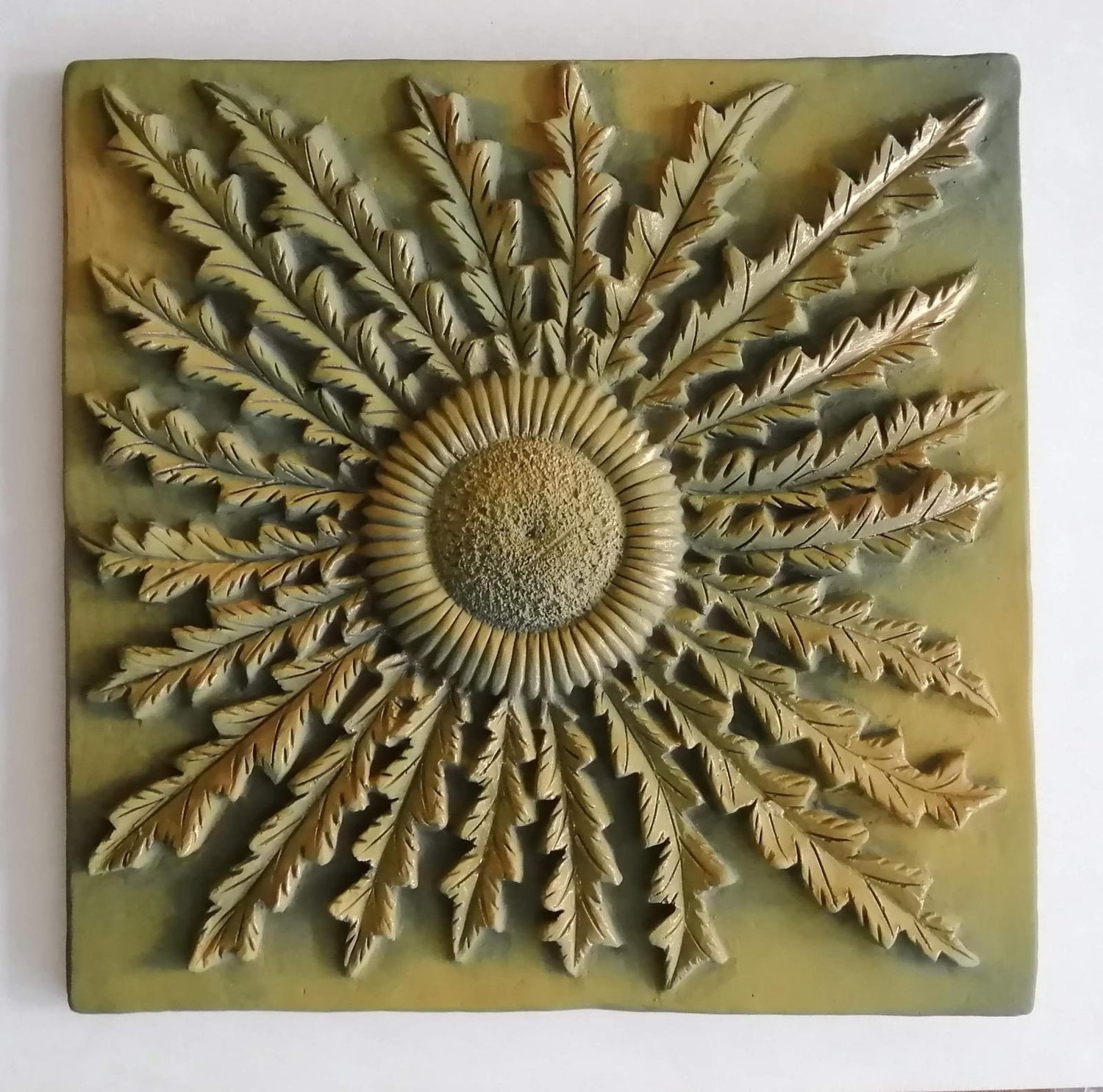 Pieza elaborada en cerámica con una base de madera de 25x25