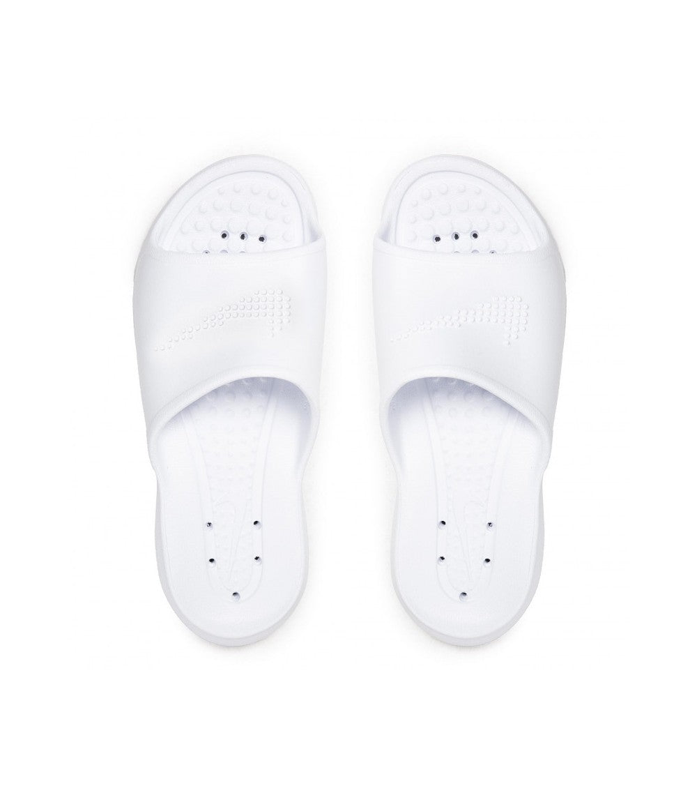LLÉVALAS EN LA DUCHA O FUERA DE ELLA. Terminas tu entrenamiento y solo te queda una cosa que hacer antes de salir a divertirte: ir a la ducha. No te preocupes, las Nike Victory One son justo lo que necesitas. El versátil diseño de espuma de una sola pieza ofrece mucha suavidad y comodidad, y los patrones de tracción de la suela proporcionan adherencia en superficies húmedas. También se secan rápidamente para que nadie sepa que acabas de salir de la ducha mientras te unes a la fiesta. Ventajas Nueva espuma más suave para ofrecer una amortiguación increíble y una comodidad duradera.Plantilla anatómica que envuelve y sujeta el pie, y patrón de adherencia para mantener el pie en su sitio.Parte superior de la correa rodada para aportar comodidad y relleno grueso para una mayor suavidad.Nuevo diseño de las correas con más espacio para una gran variedad de tallas de pie.Suela con un nuevo patrón para ofrecer mayor tracción y perforaciones para añadir ventilación y facilidad de drenaje si se usan en la ducha. Detalles del producto Diseño Swoosh texturizado en la tiraColor mostrado: Blanco/Blanco/Blanco