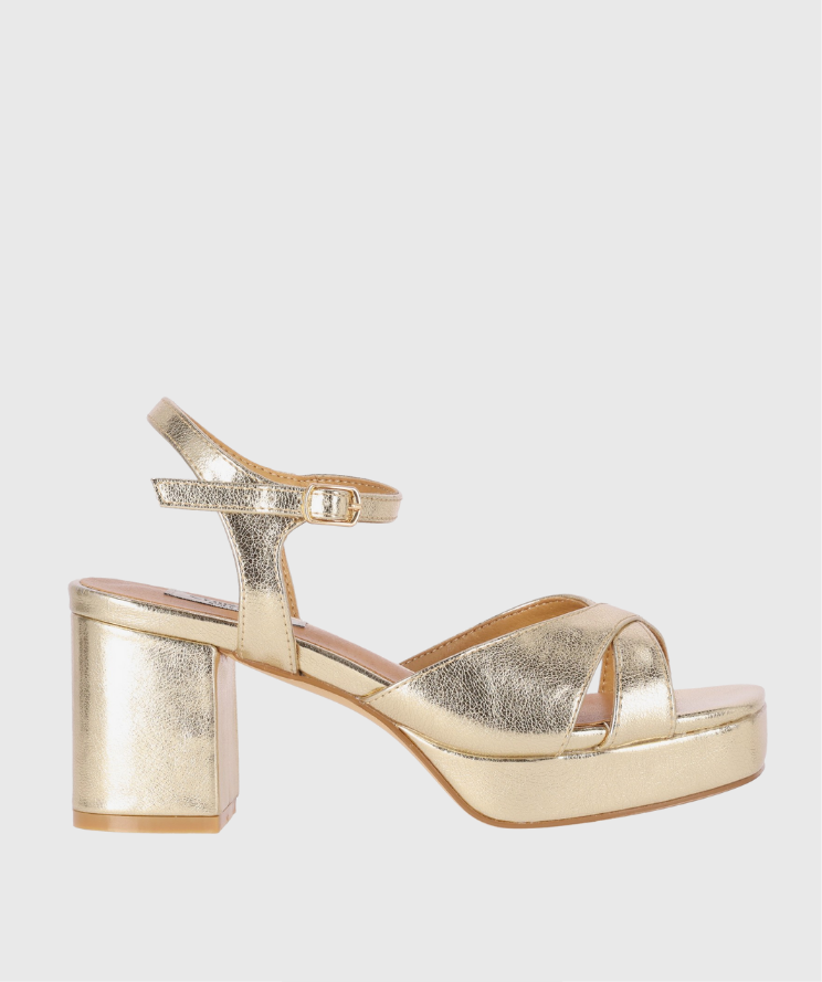 FLORA 23 SANDALIAS CHIKA10Sandalia de tacón, cruce frontal, destalonada y con cierre en el tobillo. Con tacón bajo y plataforma, será tu metalizado perfecto para no perderte ningún plan.