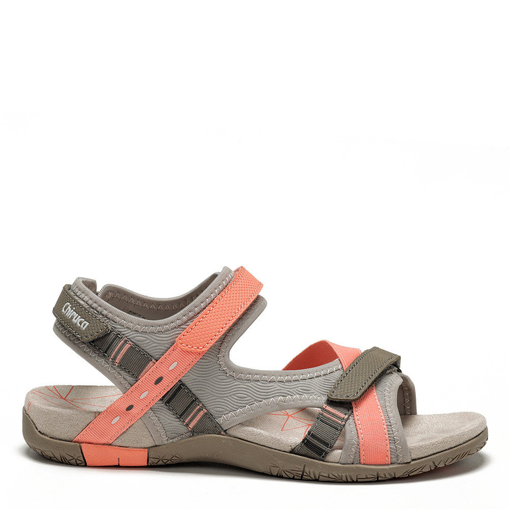 El corte de las sandalias está fabricado con materiales sintéticos y textiles de alta calidad. Esta combinación garantiza una excelente durabilidad y resistencia al desgaste, permitiéndote disfrutar de tus sandalias por mucho tiempo. Además, el cierre de velcro proporciona un ajuste personalizado y seguro, permitiéndote adaptar las sandalias a tus necesidades individuales. Una de las características destacadas de las sandalias es su entresuela de goma EVA forrada de microfibra. Esta combinación de materiales ofrece una amortiguación suave y efectiva, absorbiendo los impactos y brindando una sensación de comodidad en cada paso que das. Ya sea que estés caminando por la ciudad, explorando senderos o disfrutando de una escapada a la playa, estas sandalias te mantendrán cómoda y protegida. CARACTERÍSTICAS Corte sintético y textil. Cierre marca VELCRO®. Entresuela de EVA forrada con microfibra. Suela de caucho.