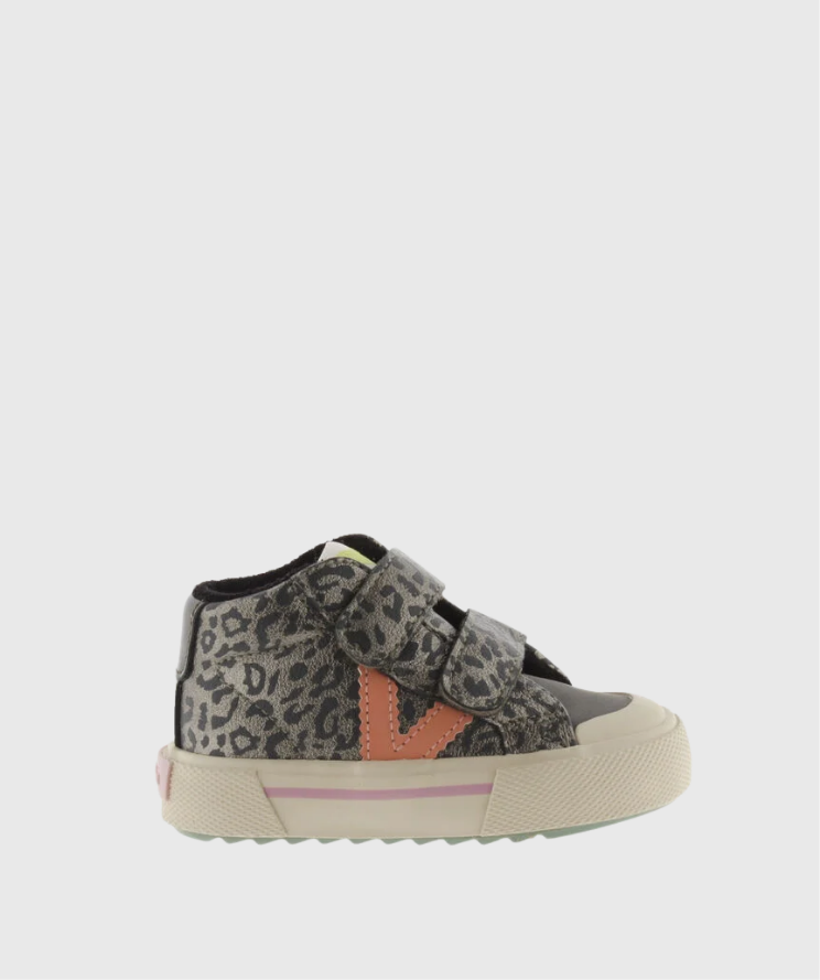 1065197 BOTINES VICTORIABotines de niñas de efecto piel metalizada con estampado animal print. Logotipo de victoria lateral en colores flúor en contraste. Cierre mediante tiras adherentes (tres a partir de la talla 29), que facilitan el calce y fomentan su autonomía. Suela en sierra de goma con refuerzo en la puntera para una mayor resistencia y durabilidad.