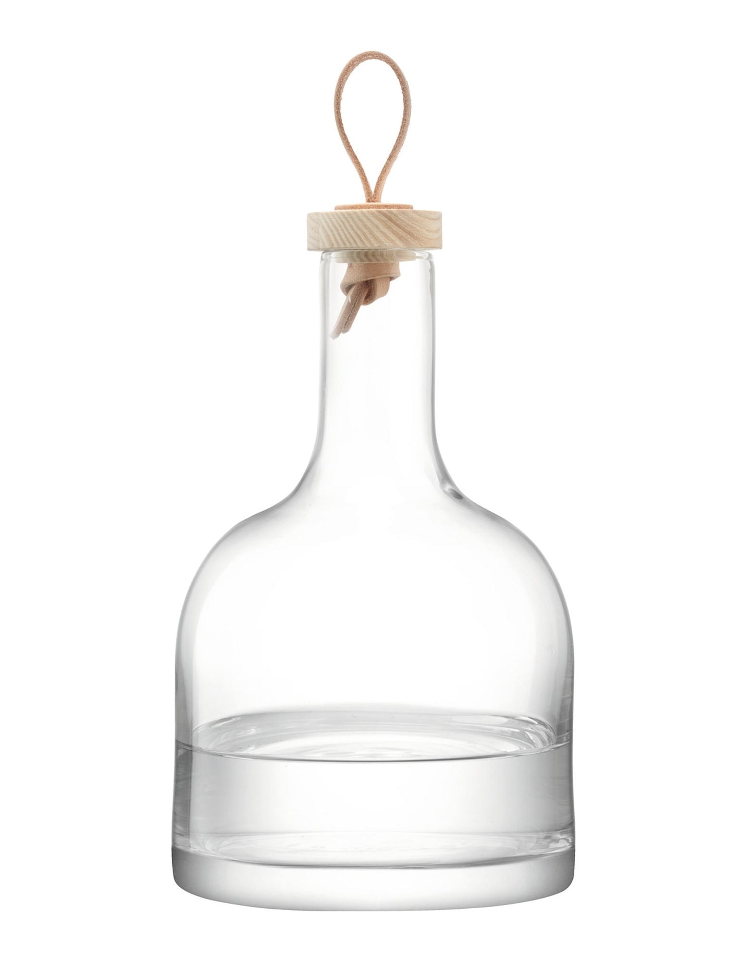 Vidrio de alta calidad, esta jarra tiene contornos redondeados y un cuello largo y estrecho. Se pasa una tira de cuero natural a través de la tapa de fresno de origen sostenible. Capacidad: 1.7L, Altura: 24.5cm, Ancho: 15cm