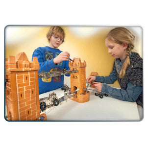 Millones de personas contemplan el emblemático puente de la Torre de Londres cada año. ¡Con este set de construcción de Teifoc puedes recrearlo tú mismo! Atrévete a recrear una impresionante réplica de ladrillo y acero de la mundialmente famosa estructura británica. Con más de 1.000 piezas de acero, ladrillo y mortero de alta calidad, este innovador kit de construcción es el primero de su tipo en ofrecer ladrillos de terracota, mortero soluble a base de arena y extracto de maíz y acero de alta calidad de Eitech. Medidas: 1150 x 190 x 310 mm Edad: +8 años