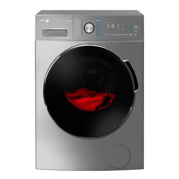 Lavadora de libre instalacion Color Acero Inoxidable Capacidad 8 kg 1400 rpm Control electronico full touch Indicador de tiempo restante Puerta con protector termico decorativo de 480 mm Ojo de buey de 310 mm 20 programas Programas especiales Favorito,Lana, Higiene+ y Antialergico Programa rapido 15 minutos Funciones especiales STEAM WASH, Nivel Suciedad, Prelavado,Aclarado Extra y Autolimpieza Silentwash para lavado nocturno Optitime optimiza energia o reduce tiempo Indicadores consumo de agua y energia Indicador de carga por programa Programacion diferida, selector de temperatura y centrifugado Pausa + anade add+ Tambor soft extra cuidado Clase eficiencia energetica b Consumo energ 55 kWh/100 ciclos Consumo de agua 48 L/ciclo Duracion programa eco 3 38 h Clase eficiencia centrifugado B Ruido centrifugado 76 dB(A) Clase ruido B