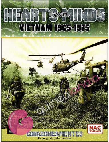 Hearts and Minds 1965-1975 (Corazones y Mentes) Este juego de estrategia histórica aborda el conflicto de Vietnam entre 1965 y 1975, donde EE. UU. luchó para frenar la expansión comunista en Vietnam del Sur. Con medio millón de tropas en el sudeste asiático, la guerra se extendió a Laos y Camboya, generando protestas masivas en EE. UU. y un alto costo humano. Los jugadores acumulan Voluntad Política: el jugador norvietnamita (Rojo) gana puntos de Paloma, mientras que el sur vietnamita (Azul) resta puntos de Halcón. El juego ofrece ocho escenarios, desde campañas completas hasta escenarios más cortos, con un enfoque en la guerra de guerrillas y la agitación política. Los mazos de cartas (rojo, azul y negro) introducen recursos y eventos históricos, y las decisiones sobre el uso de tropas afectan la moral y el control político en cada provincia. Hearts and Minds presenta reglas accesibles y componentes de alta calidad, ofreciendo una experiencia única en este conflicto histórico. Información de Hearts and Minds Contenido: 1 libro de reglas (incluye las reglas en solitario) 1 libro de juego 1 mapa montado de 57x87,5 cm 3 planchas de fichas 1,9 cm 1 mazo de cartas con lo siguiente: 27 cartas rojas 27 cartas azules 26 cartas negras 1 carta negra opcional (Misión española en Vietnam) 1 díptico tamaño A4 con diagramas de flujo de ayuda al juego 2 hojas de ayuda (una para cada jugador) 2 dados de seis caras 1 bolsa de tela negra para las fichas del Vietcong