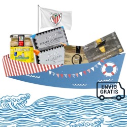 Nuestra pack Gabarra II, es el regalo ideal para sorprender en navidad y durante todo el año. La cesta de productos de Bilbao para los amantes de la gastronomía de Bizkaia y su cultura. La combinación perfecta con los mejores productos del mar de Bizkaia.  La cesta Gabarra contiene:  - Bonito del Norte Arroyabe 185 gr. - Bokarte Di Cardinale (Anchoas Del Cantábrico) 112 gr. - Mejillones En Escabeche 112 gr. - Mousse de Bonito 115 gr. - Ventresca de Atún Alakrana 115 gr. - Cesta con la forma de la Gabarra. - Historia de la Gabarra. - Gastos de envío a península incluidos. Si no deseas incluir la historia de la Gabarra porque te gusta el regalo y no quieres relacionarlo con el Athletic de Bilbao por favor dínoslo y quitamos la historia de la Gabarra.