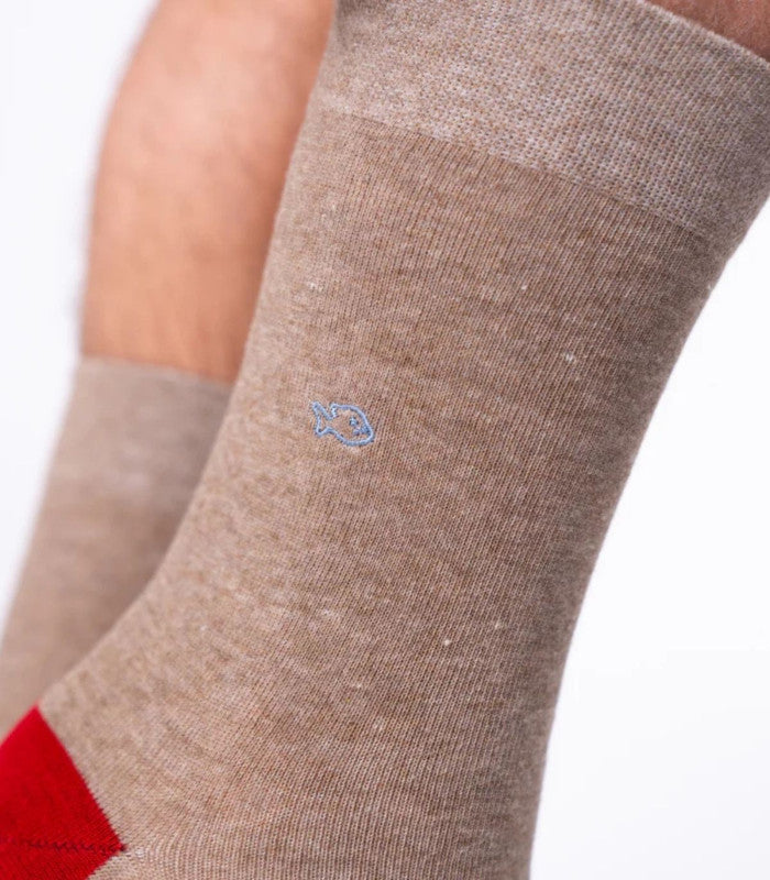 CARACTERISTICAS - Calcetines media pantorrilla - Diseño liso con puntera y talón de colores - Grosor medio - Algodón peinado, suaves y no hace bolitas tras el lavado - Costuras extrafinas, cosidas a mano - Libre de sustancias nocivas - Puntera y talón reforzados con hilo de nailon - Talla 41-46