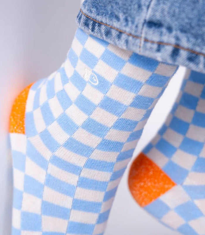 CARACTERISTICAS - Calcetines media pantorrilla - Estampado de cuadros - Grosor medio - Algodón peinado, suaves y no hace bolitas tras el lavado - Costuras extrafinas, cosidas a mano - Libre de sustancias nocivas - Puntera y talón reforzados con hilo de nailon - Color: azul claro, beige y naranja - Talla 41-46
