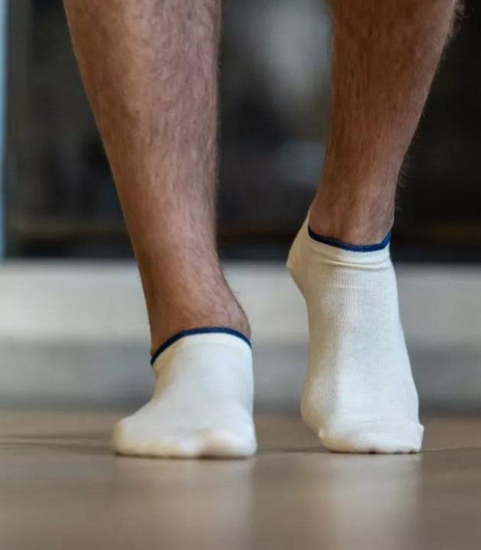 Calcetines de tamaño corto (hasta el tobillo). Cómodos, suaves y resistentes. Tienen puntas y talones reforzados y costuras extrafinas entre los dedos. Composición: 88% algodón peinado, 9% poliéster, 3% elastano. Talla: 41/46 Lavado a 30º – recomendable lavar del revés.