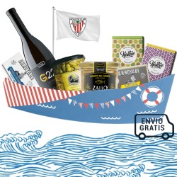 Nuestra pack Gabarra IV, es el regalo ideal para sorprender en navidad y durante todo el año. La cesta de productos de Bilbao para los amantes de la gastronomía de Bizkaia y su cultura. Un Txakoli muy especial de la bodega de Gorka Izaguirre, con productos del mar y de la huerta de Bizkaia, así como un buen acompañamiento dulce de Balmaseda. La cesta Gabarra contiene: - Txakoli Gorka Izaguirre G22. - Guindillas de Lezama 285 gr. - Bonito del Norte Zallo 220 gr. - Ventresca de Bonito del Norte Arroyabe en aceite de oliva 111 gr. - Chocolate Kaitxo con leche con regaliz y violetas. - Chocolate Kaitxo blanco con cítricos y sal. - Cesta con la forma de la Gabarra. - Historia de la Gabarra. - Gastos de envío a península incluidos. *Si no deseas incluir la historia de la Gabarra porque te gusta el regalo y no quieres relacionarlo con el Athletic de Bilbao por favor dínoslo y quitamos la historia de la Gabarra.
