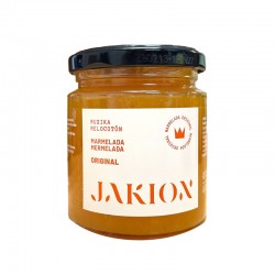 La mermelada de melocotón de Jakion ha sido elaborada con los mejores melocotones de la temporada. Ideal para desayunos, meriendas o para acompañar repostería y yogures. ¡Una de las mermeladas naturales favoritas a la hora de untar tostadas! Esta mermelada vasca artesana esta elaborada por Jakion. La empresa Jakion fue creada con la intención de recuperar, potenciar y fortalecer la actividad agraria de los caseríos en la comarca de Deba Garaia, proporcionando a los mismos, servicios que posibiliten el mantenimiento de sus explotaciones agrarias de una manera digna.  La empresa Jakion fue creada con la intención de recuperar, potenciar y fortalecer la actividad agraria de los caseríos en la comarca de Deba Garaia, proporcionando a los mismos, servicios que posibiliten el mantenimiento de sus explotaciones agrarias de una manera digna.