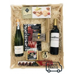 Para los que quieren regalar un pack de productos gourmet Vasco pero están indecisos, que mejor que un poco de todo lo mejor. Con esta selección de los mejores productos de la gastronomía Vasca acertarás seguro. ¿Txakoli o tinto? ¿embutido o conservas de pescado? Pues lo mejor es que juntemos un poquito de cada y elaboremos un pack completo: - Una botella de Txakoli Rezabal D.O. Getaria - Una botella de vino tinto DO Rioja Alavesa Eguren Ugarte Crianza - Una cuña de queso Idiazábal Natural (250 gr) - Un sobre de jamón Urdetxe (100 gr) - Una lata de ventresca de atún Echebastar (115 gr) - Un tarro de Mousse de Bonito Zallo (115 gr) - Una caja de Galletas Artesanas Casa Eceiza (100 gr) - Una barra de chocolate Casa Eceiza (125 gr) - Estuche de madera