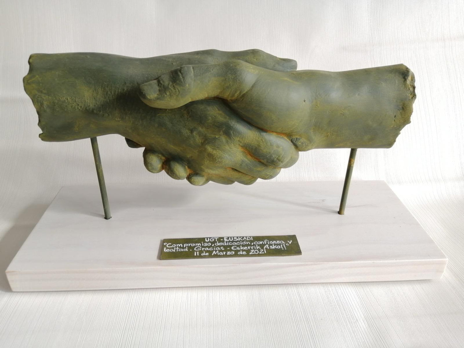 Pieza elaborada en yeso cerámico con una base de madera de 35x13altura con la figura 22cm