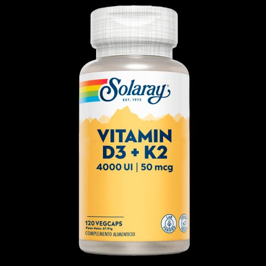 Los ingredientes que contiene 1 cápsula de Solaray Vitamina D-3 & K-2 son los siguientes: Vitamina D-3 (colecalciferol): 100 mcg (4000 UI) (2000%VRN) - Procedente de lanolina Vitamina K (menaquinona-7 de Natto) (K-2) (garbanzos): 50 mcg (67% VRN*)