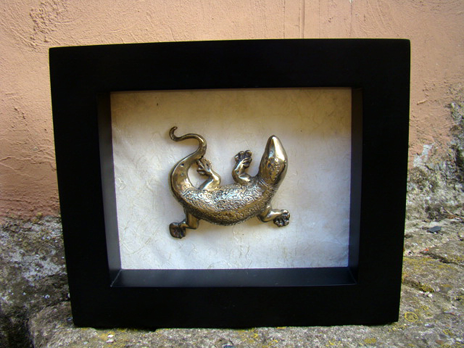 Cuadro de Gecko en laton. Muy original.La figura de laton del animal esta en el centro del cuadro. Muy interesante por su buen precio y calidad.