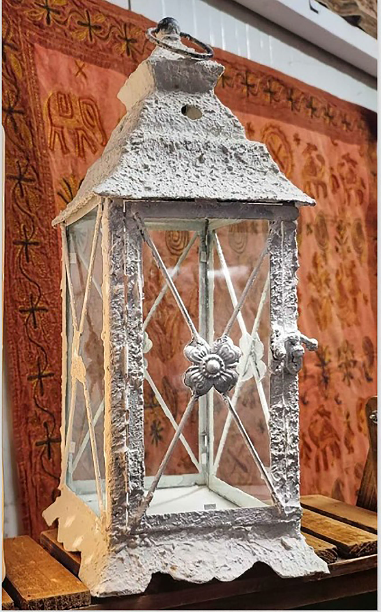 Farol porta velas de metal mod. Mozambique pintado en blanco.