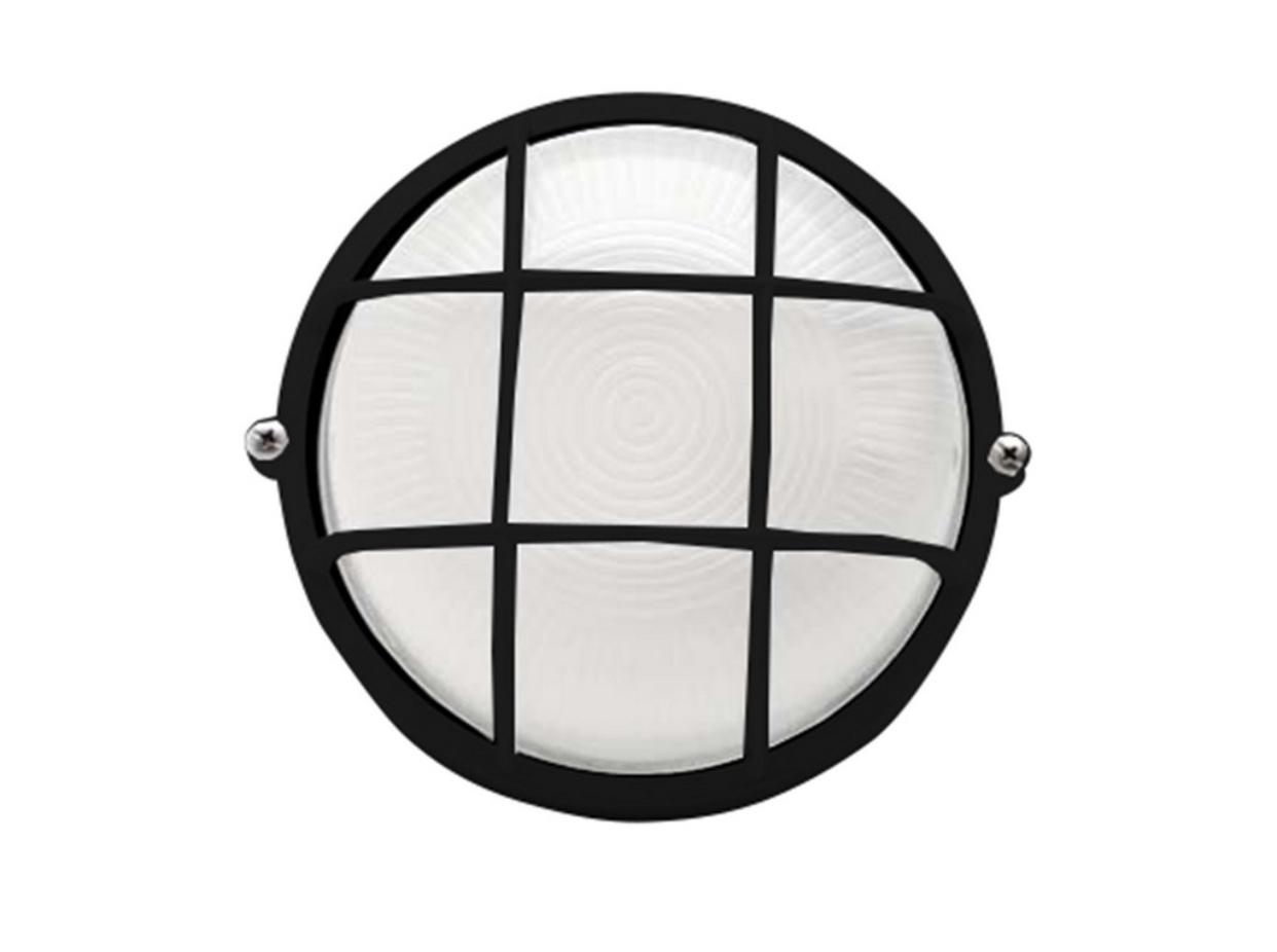 ojo de buey redondo fabricado en aluminio y acabado negro mate para bombilla e27 hasta un máximo de 100w.perfecto para exteriores, techo o pared de balcones o terrazas.
