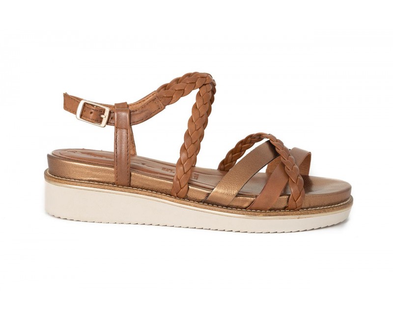 SANDALIA COMBINADA EN CUERO Y MATERIALES SINTÉTICOS. ELABORADA CON LOS MÁS ALTOS ESTÁNDARES DE CALIDAD. PLANTA ACOLCHADA Y PISO LIGERO. CUÑA DE 3.5 CM, ALTURA ADECUADA PARA EVITAR SOBRECARGAS EN LA ESPALDA. DISEÑO Y GARANTÍA DE CALIDAD ALEMANA.