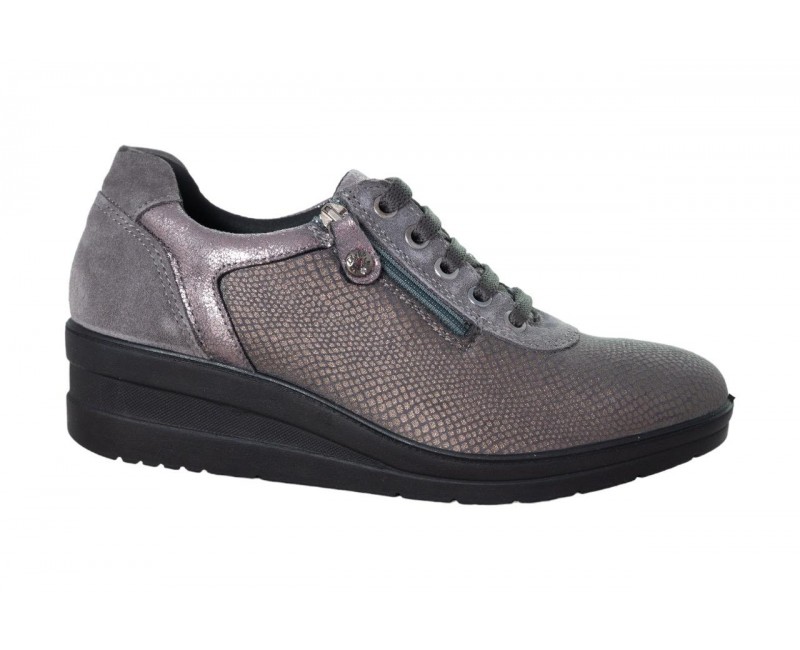 Sneaker de piel con plantilla de cuero extraible y acolchada. Suela ligera y antideslizante con 4cm de altura que evita sobrecargas en la espalda. Cierre de cremallera que facilita el calce. Horma amplia. Diseño italiano.