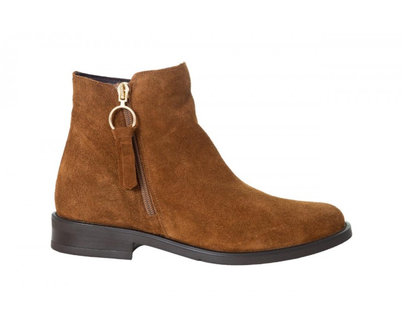 Botín con cremallera para mujer. El exterior es ante de primera calidad y la plantilla de cuero. Suela aislante y antideslizante. Perfecto para combinar con todos tus outfits y con la seguridad que aporta llevar un calzado fabricado con la garantía de calidad made in Spain.