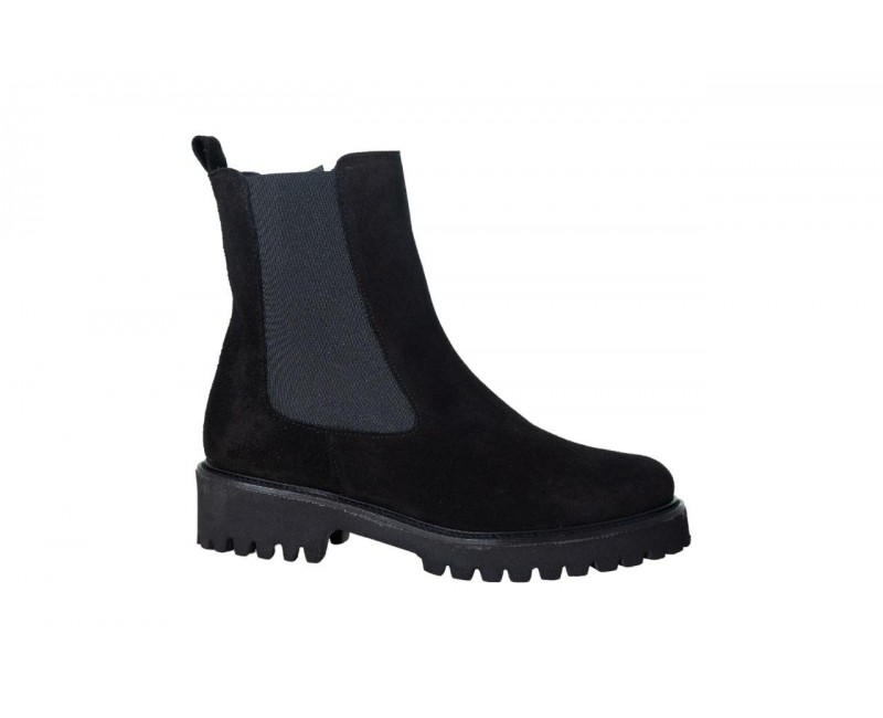 Botín de mujer con elásticos y cierre de cremallera. Fabricado en ante de primera calidad. Suela track ligera con 3cm de altura. Un básico para esta temporada, muy cómodo y fabricado con la garantía made in Spain.