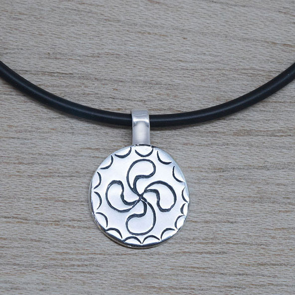 Producto vasco colgante LAUBURU pequeño de plata cordón caucho mitología vasca artesanía TXUS GRUZETA