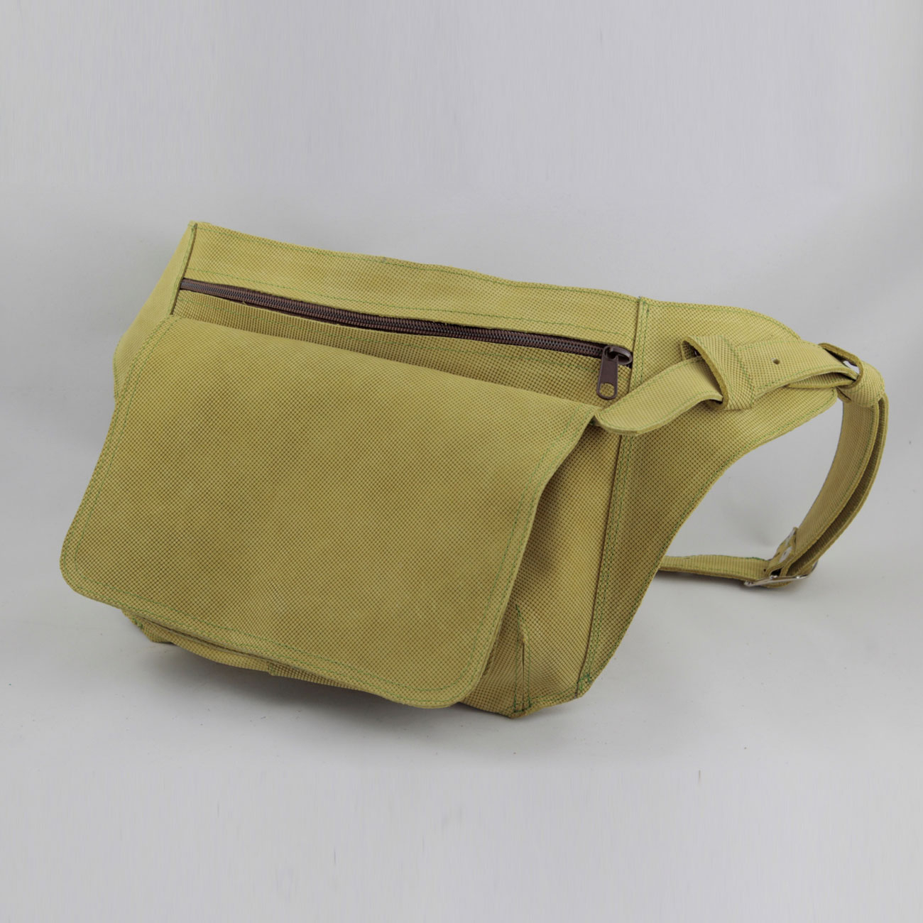 Producto Vasco Riñonera piel gran tamaño color mostaza artesanía LARRUZKO ESKUAK