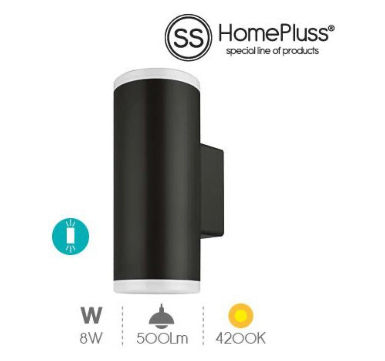 Led Integrado 8w/500Lm Luz Fría (6000k) Material: Acrílico, PVC Color: Negro Tamaño: 200x77mm (Alto x Ancho) Eficiencia Energética A++ IP54 Uso Interior/Exterior