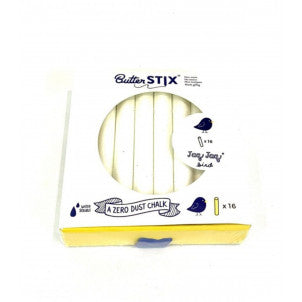 16 tizas blanca con un tacto similar a las ceras, no sueltan polvo y se borran simplemente con un paño húmedo. Ideales para las los libros pizarra Jaq Jaq Bird y otras superficies no porosas como otras pizarras, baldosas o cristales. Las tizas Butter Stix tienen una textura suave, no dejan polvo y no son tóxicas. - Libres de PVC, BPA y ftalatos.
