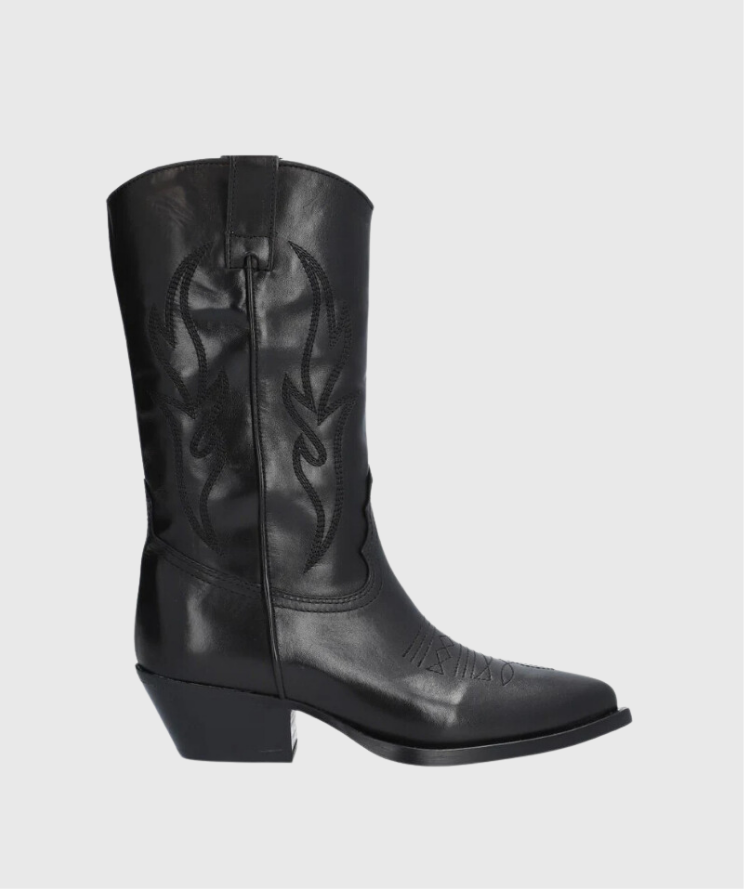 2084 BOTA ALPEBotas de mujer ALPE WESTERN confeccionado en piel, tacón de 4, 5cm, suela antideslizante, puntera afilada, sin cierre y altura de caña media.Exterior: piel.Interior: piel y textil.Plantilla: textil.