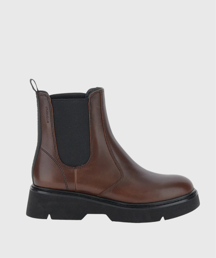 221628 BOTA STONEFLYTESSA 5 CALF LTHBotas chelsea para mujer en piel marrón con ajuste regular. Con su silueta sencilla y elegante, es un clásico atemporal que combina a la perfección con cualquier conjunto. Versátil y refinado, es ideal para completar tanto looks informales como más formales, aportando siempre un toque de estilo sofisticado. Este modelo incorpora la tecnología Second Skin® que hace que el calzado sea suave y ligero, como una segunda piel. Suela de goma, altura del tacón (cm): 4.3.