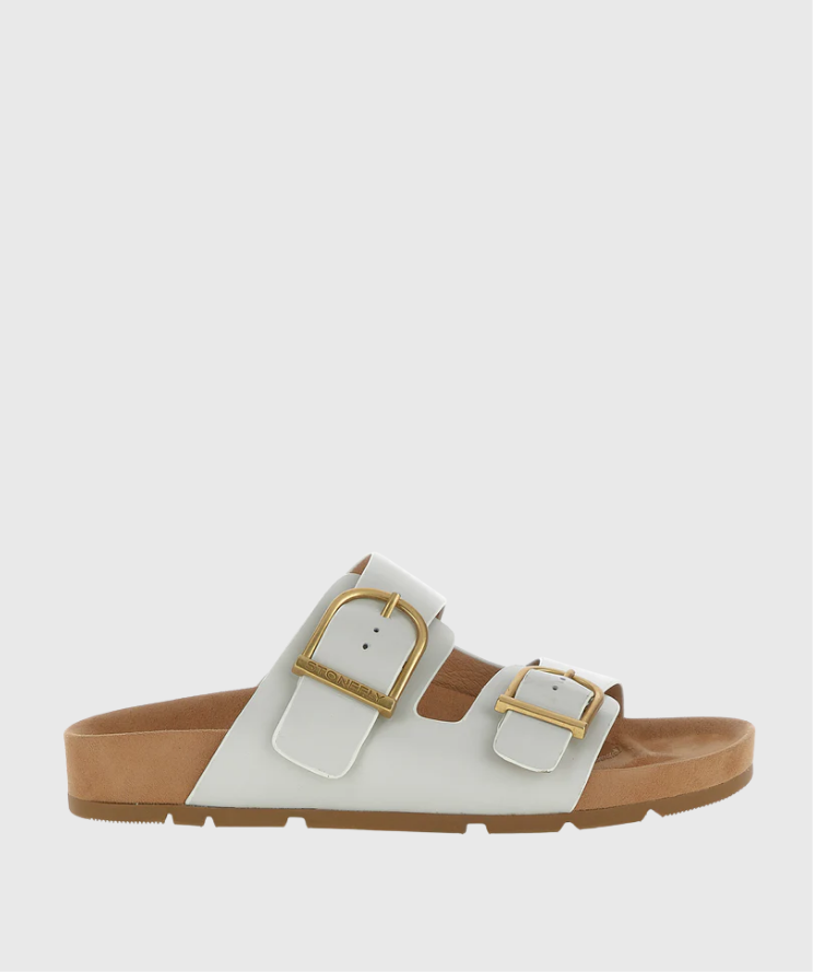 222419 SANDALIAS STONEFLYSIBIL W 4 CALF LTH Sandalia sin tacón para mujer en piel blanca con corte holgado. Equipado con dos correas ajustables para una comodidad personalizada, este modelo combina versatilidad y estilo casual, perfecto para afrontar los días con practicidad y ligereza. La zapatilla con Blusoft Memory® tiene un inserto especial de espuma viscoelástica en la zona del talón que amortigua los golpes de la marcha y está construida con un material especial con una estructura de célula abierta que garantiza una transpirabilidad muy alta. Suela de EVA.