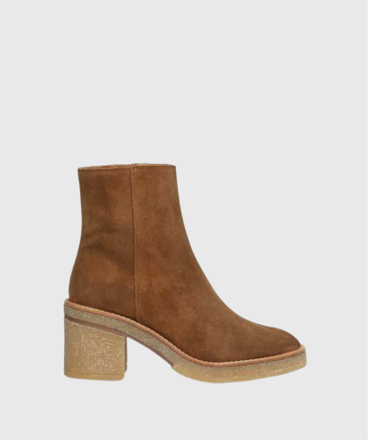 BOTINES ALPE JANISBotin para mujer ALPE JANIS, fabricado en piel (baby silk) de color cuero con tacón de 7,5 cm, suela antideslizante y puntera redonda, con cierre mediante cremallera y caña baja.Composición exterior: Piel.Composición interior: Piel + textil.Plantilla: Textil.