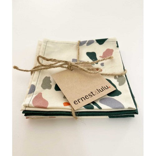 La firma francesa Ernest & Lulu nos ofrece un lote de 3 pañuelos tissue fabricados en algodón orgánico. Toda la confección se realiza de forma artesanal y la impresión del estampado está realizado de forma ecológica por la asociación de artesanos franceses (MOF). Dimensiones: 24x24cm Composición: 100% algodón orgánico. Muy apropiado para pieles sensibles.