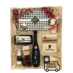 Nuestro regalo navideño número 6 está pensado para los amantes del dulce y las conservas vegetales. Una cesta de productos navideños dulce y sana decorada en caja de madera. Nuestro pack navideño contiene: - 1 Botella de Aceite de Oliva Virgen La Maja (50cl) - 1 Molinillo Sal de Añana (70gr) - 1 Lata de Espárragos de Navarra Serrano 8/12 Frutos - 1 Bote de Boletus Edulis Arbolaren Azpian (180gr) - 1 Caja Bombones Casa Eceiza (200gr) - 1 Turrón de Intxaursaltsa Artesano (250gr) - 1 Turrón de Soconusco Artesano (250gr) - 1 Turrón de Pistacho (300gr) - 1 Piruleta de Chocolate Olentzero (150gr) - Caja de Madera
