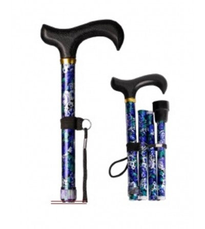 Bastón de aluminio plegable y extensible para mujer estampado flores con puño ergonómico y contera antideslizante. Ideal para llevar de viaje. Se sirve con funda de PVC. Envíos gratis dentro de la península.