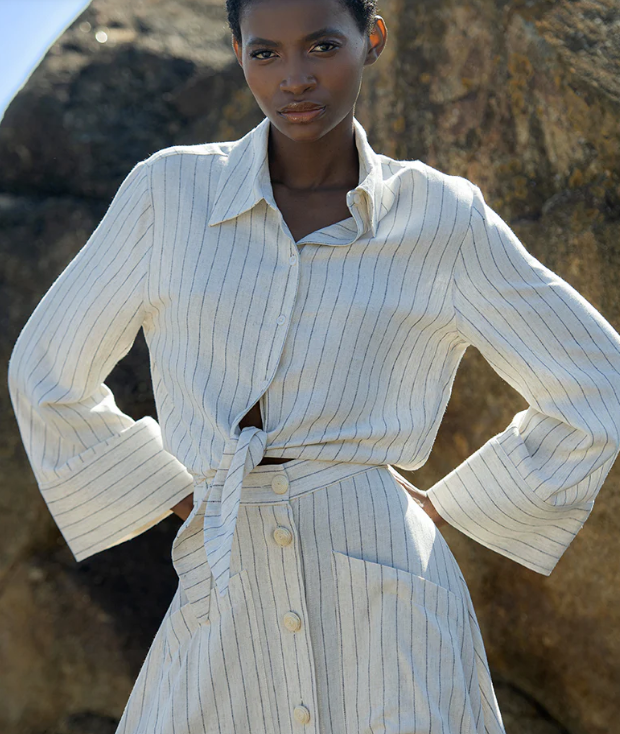 CAMISA RAYAS LINO ARENA
