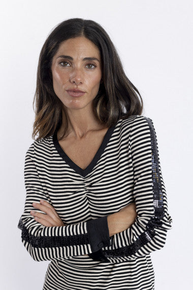 -Tira de lentejuelas en las mangas