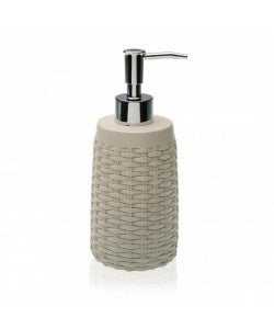 DOSIFICADOR BAÑO BEIGE/GRIS Largo: 7.6 cm.Ancho: 6.5 cm.Alto: 19 cm.Material: RESINA