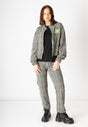 Pantalón con estampado de cuadros y detalle de líneas en verde. Con una franja negra en el lateral y un bolsillo con solapa que lleva nuestro planeta bordado. Nuestra inspiración es Caroline Herschel, una astrónoma alemana que identificó gran cantidad de estrellas, cometas y demás constelaciones del sistema solar. Nosotras la hemos convertido en planeta.