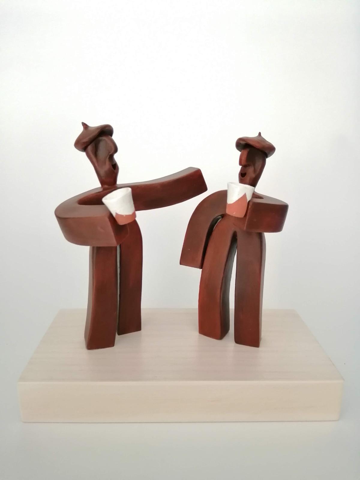 Pieza elaborada en cerámica con una base de madera de 20x10 altura con la figura 18cm