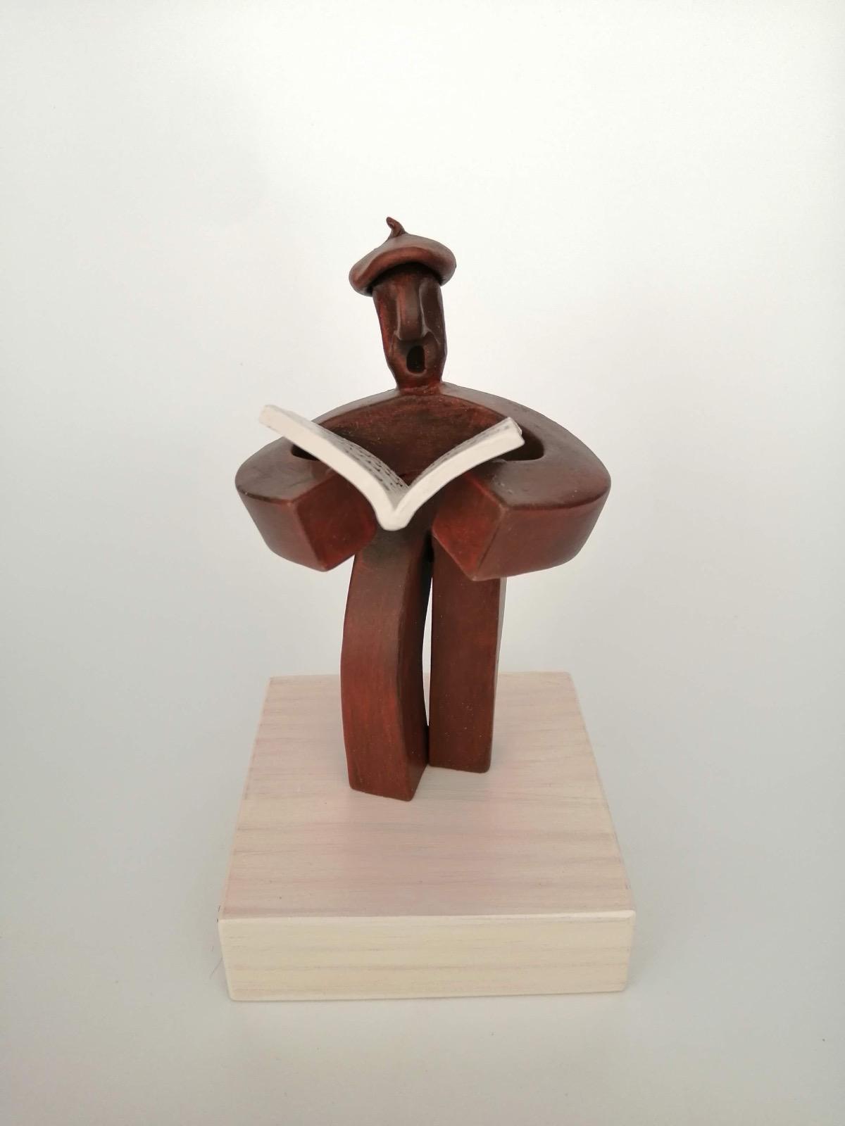 Pieza elaborada en cerámica con una base de madera de 10X10 altura con la figura 18cm