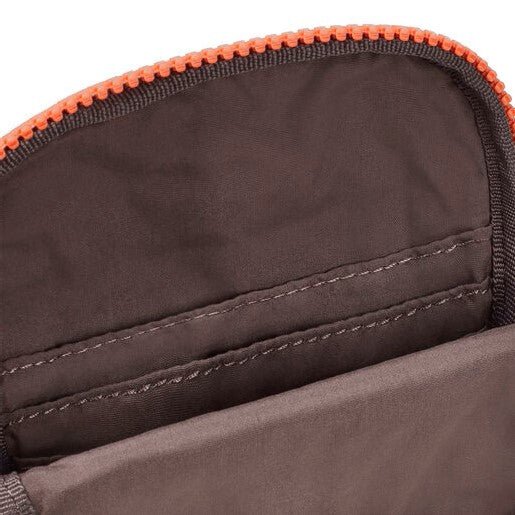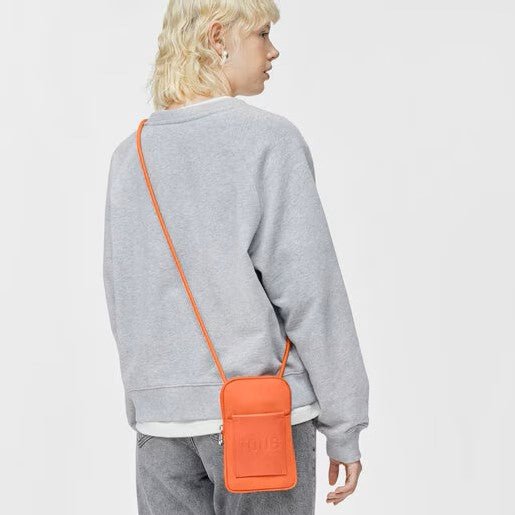 Portamóvil TOUS Marina de poliéster reciclado con detalles de piel sintética en color naranja.
